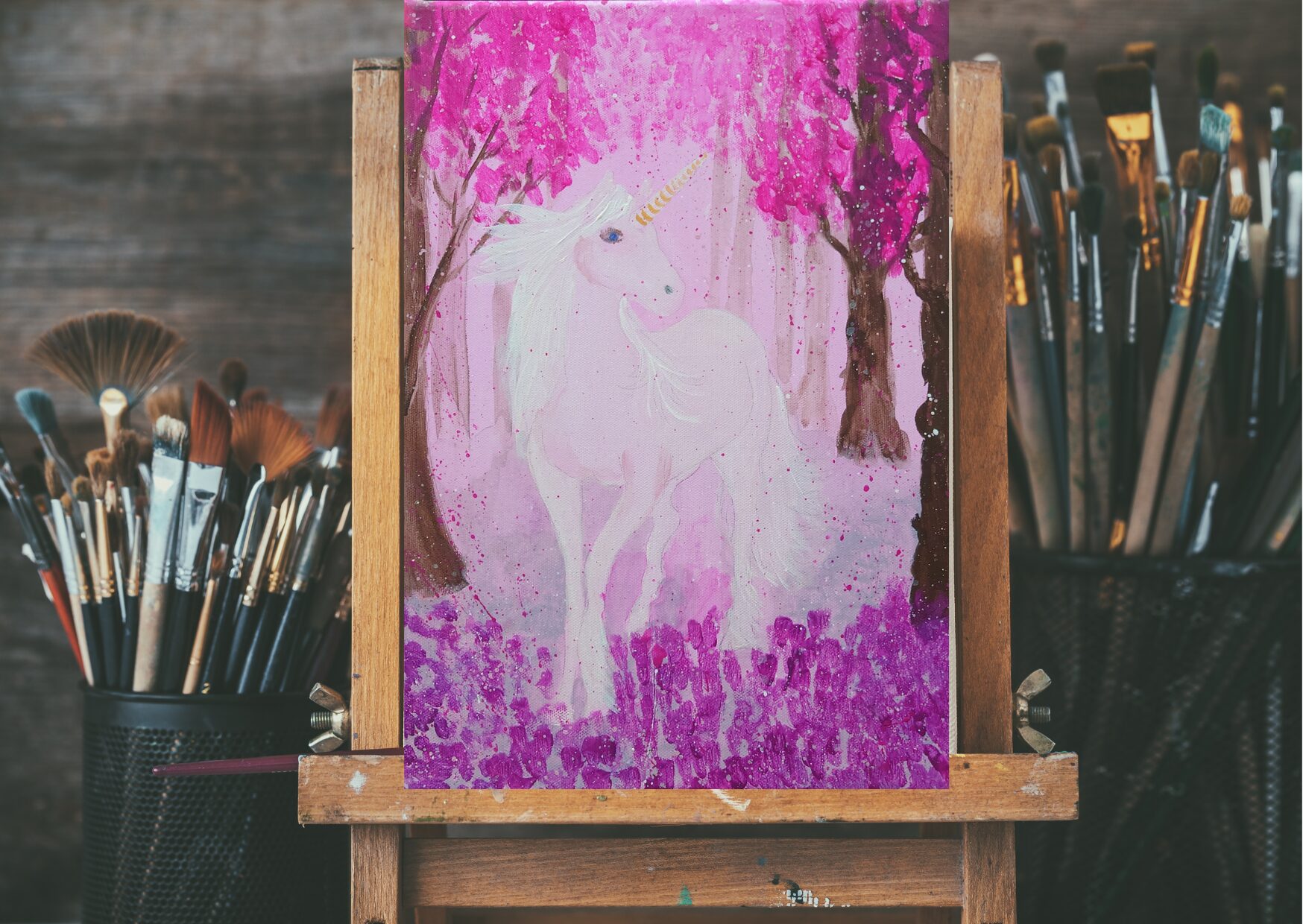 Hier erleben kleine Künstler einen kreativen Vormittag. Wir malen das Bild „Einhorn“ – ein farbenfrohes und lebendiges Kindermotiv.